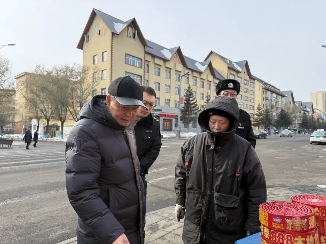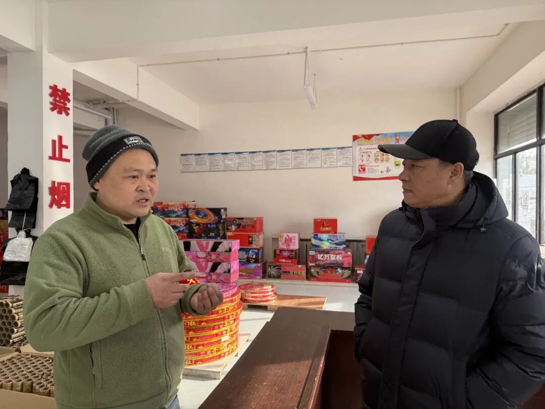 在加区烟花爆竹库、连锁店、零售点等地,张远海一行仔细查看经营资质、产品合规性、储存堆放、消防器材配备、安全警示标识等情况,详细询问进货渠道、销售台账及员工安全培训情况。张远海强调,要强化属地安全管理和企业主体责任,紧盯烟花爆竹零售点安全管理,应急、公安、市场监管等部门要坚持“一竿子插到底”的工作精神,切实做好安全监管工作,毫不放松加强烟花爆竹储存、运输、销售和燃放链条的安全监管,严厉打击烟花爆竹店铺周边人员密集场所、高层建筑、高风险区域违规燃放行为。要加大乡、镇、街道及村(社区)安全管理力度,组织网格员、社区工作者共同参与,落实经营店、点销售人员巡护和周边属地单位巡护措施,及时消除违规燃放和人员聚集的安全隐患。