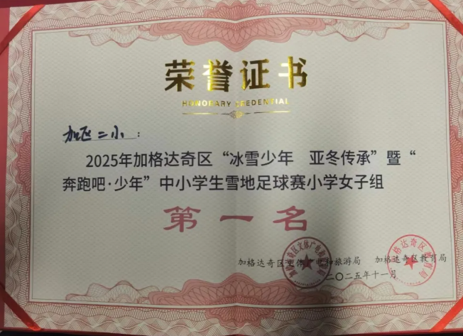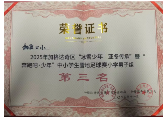 为更好地贯彻落实“双减”政策,增强学生体质,丰富校园生活,培养学生拼搏进取、团结协作的体育精神,切实推动校园足球运动的开展,我校高度重视体育工作,组织足球教师和运动员们积极备赛,以最饱满的热情参加了2025年加格达奇区“冰雪少年亚冬传承”暨“奔跑吧·少年”中小学生雪地足球比赛,喜获佳绩。