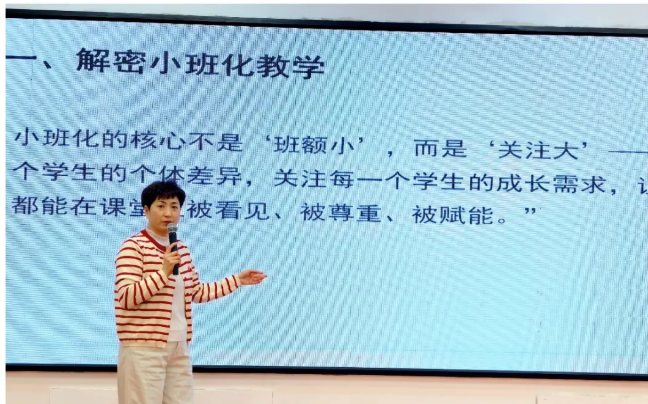 崔英蕾老师聚焦“以学生为中心:小班化理念落地与小班化教研创新”,针对小班化教学实践痛点,解析个性化指导、分层教学等关键策略,通过案例搭建理念与实践桥梁。再延伸至小班化教研,提出创新思路,解锁贴合教师成长需求的教研方法与路径,助力小班化教研模式深度落地,提升课堂质量与师生全面发展。