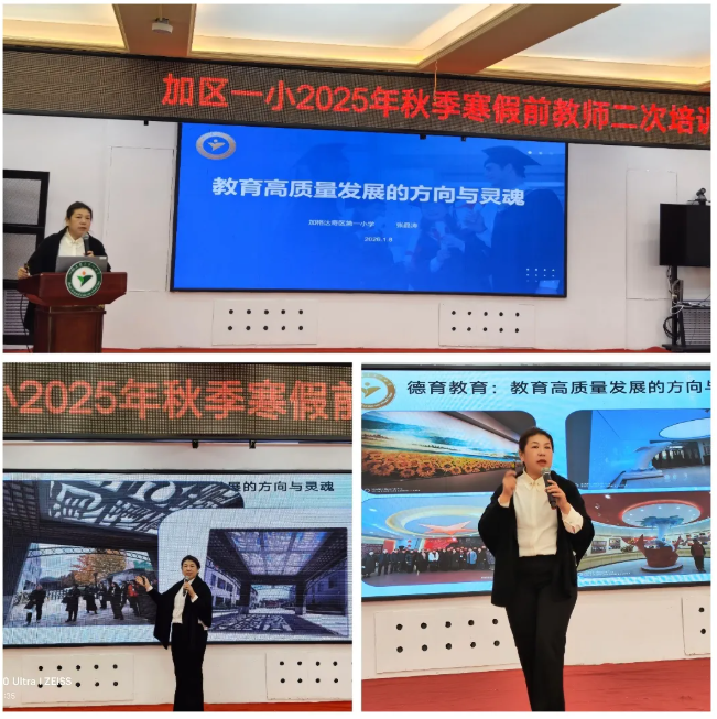 岁序更替,学思不辍。为进一步提升教师专业素养,夯实教育教学根基,2026年1月8日,加区一小精心组织寒假前教师全员培训活动。本次培训内容丰富、安排紧凑,共分为外出教师二次培训、学校德育培训、援边教师经验分享、业务校长以案说法四大板块,为全校教师奉上了一场干货满满的成长盛宴。